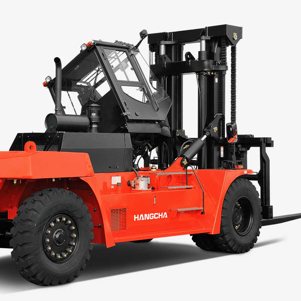 Integral full suspension tilting cabin, connected with the frame through damping rubber, which can shield most of vibration and noise. The tilted cabin which configured wide vision, suspension seat, electric control and hydraulic control joystick, is simple and easy for operation and maintenance. It provides alarge space for drivers legs.