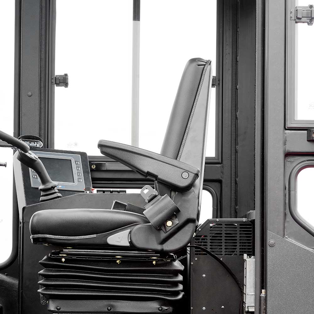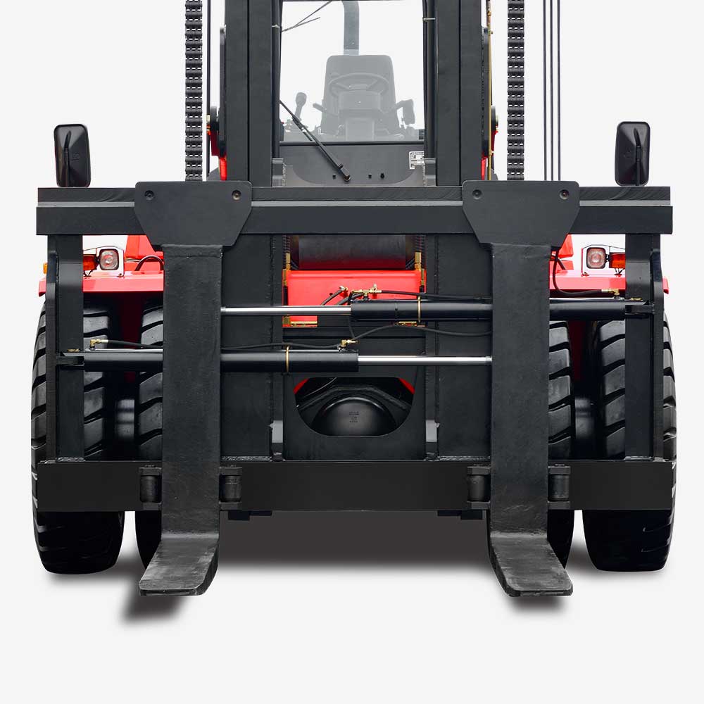 Single transverse arranged cylinder of steering axle has dual function, full hydraulic power steering, steering has priority, with load sensing function, for easy operation.
