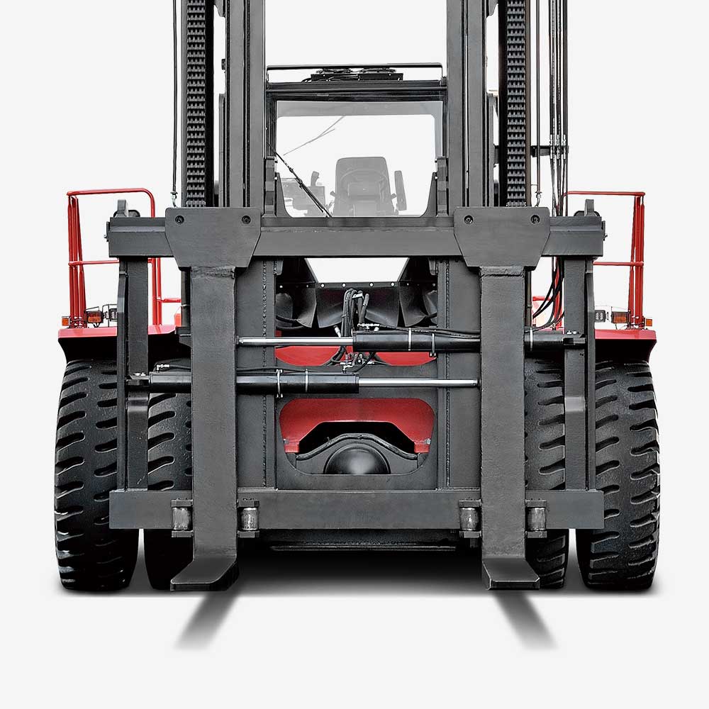 With integrated and multi-functional operating handle and electro-hydraulic proportional control, easy to lift, tilt and operate. With LUDV main control multiple-way valve, it can realize fast response, precise operation and achieve fine repeatability.