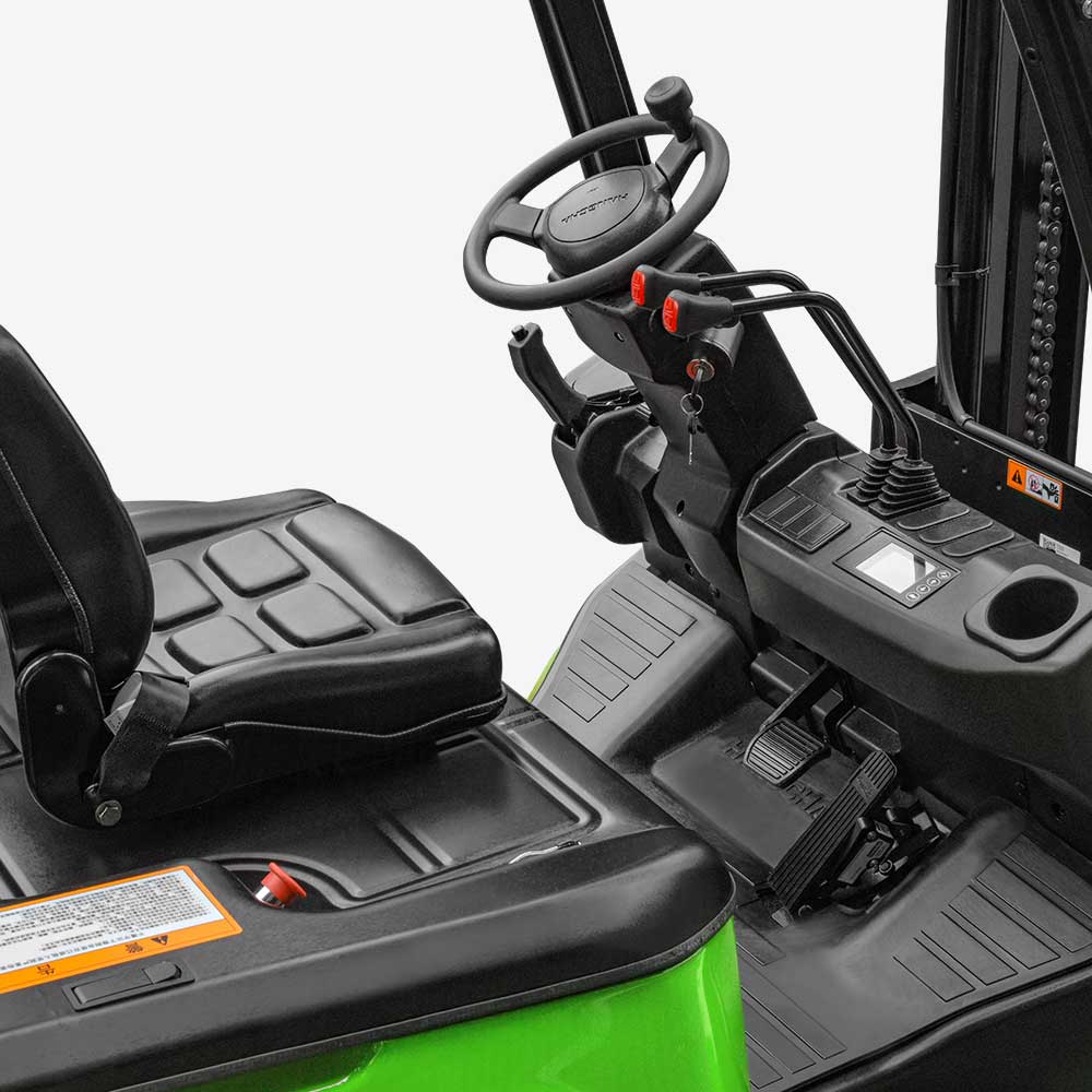 The truck is ergonomically designed to provide a good view and a large operating space