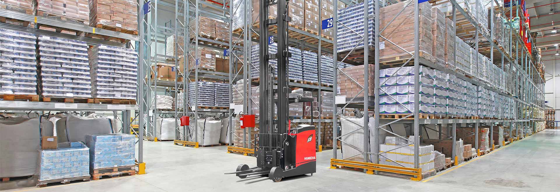 After several years of design, development, and manufacturing, Hangcha launched a new product lately –the A Series Premium Version Reach Truck: CQD12/14/16/20-AD2H. This truck is mainly used in multi-level warehouse. CQD20-AD2H rated load capacity is 2 tons, maximum lifting height is 12.5m, and the load capacity can reach 1100kg at the maximum lifting height. Its technical parameters and configuration are close to that of similar products of international manufacturers including Crown, Linde, Jungheinrich, and Hyster. This product (A series premium version reach truck) together with standard reach truck constitute the entire family of A Series reach truck of Hangcha. These products supplement with each other in rated tonnage, cover different prices together, and can satisfy different demands in prices, functions, and configuration from various users.
