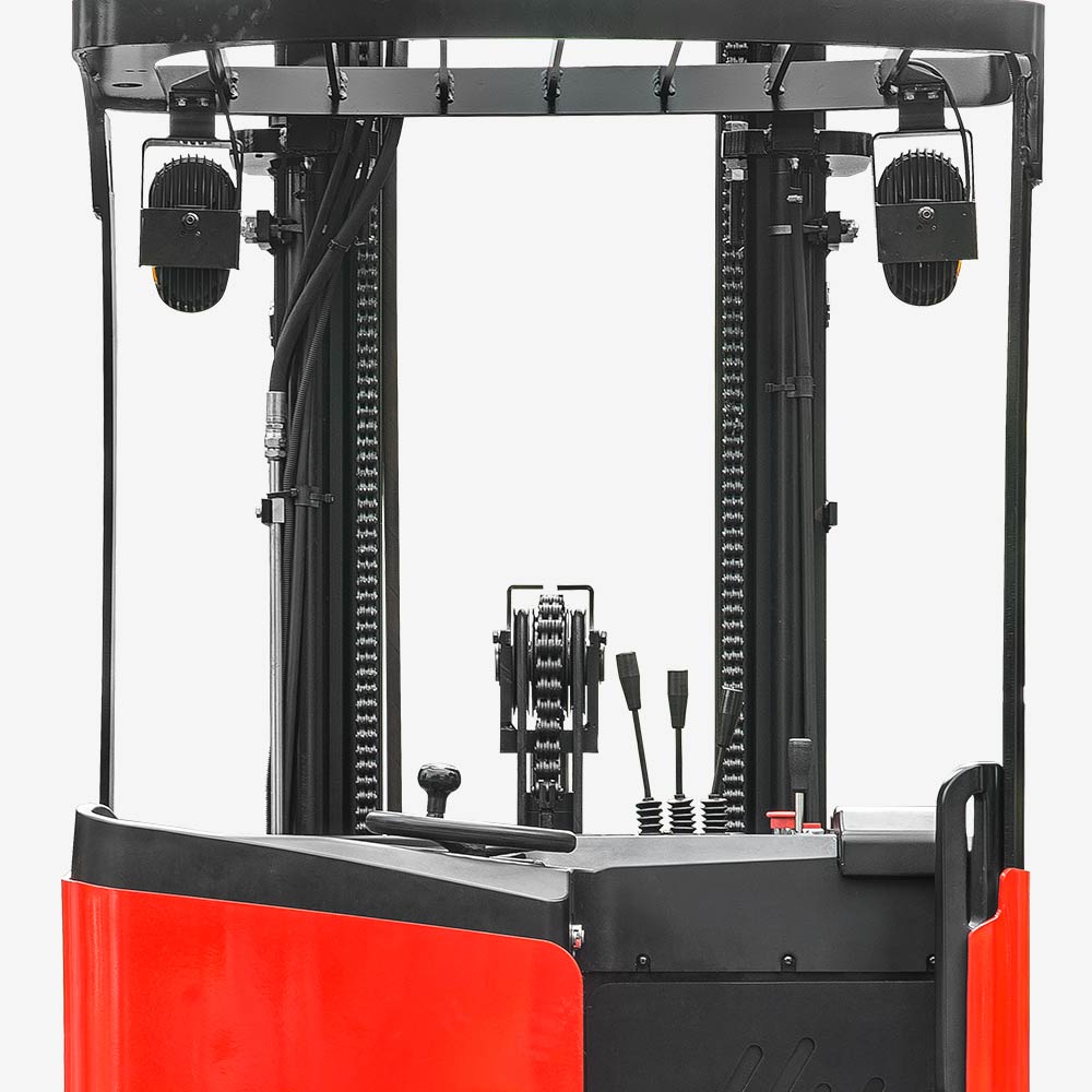 The A series stand-on reach truck is a new-generation product developed by our company in response to different market needs. The truck has comfortable ergonomics, wide operating vision and a stable control system.