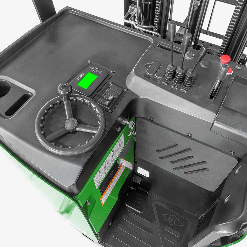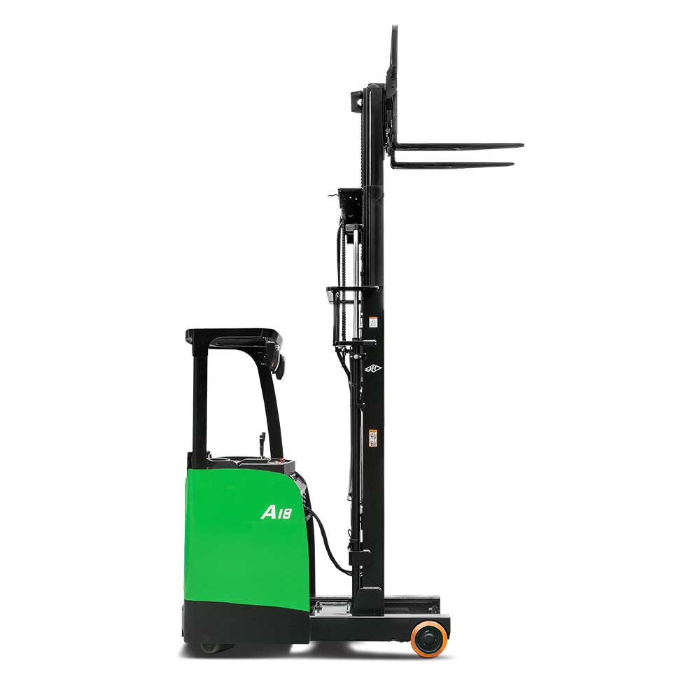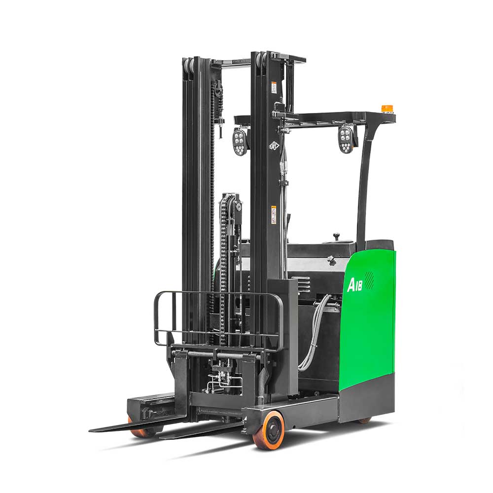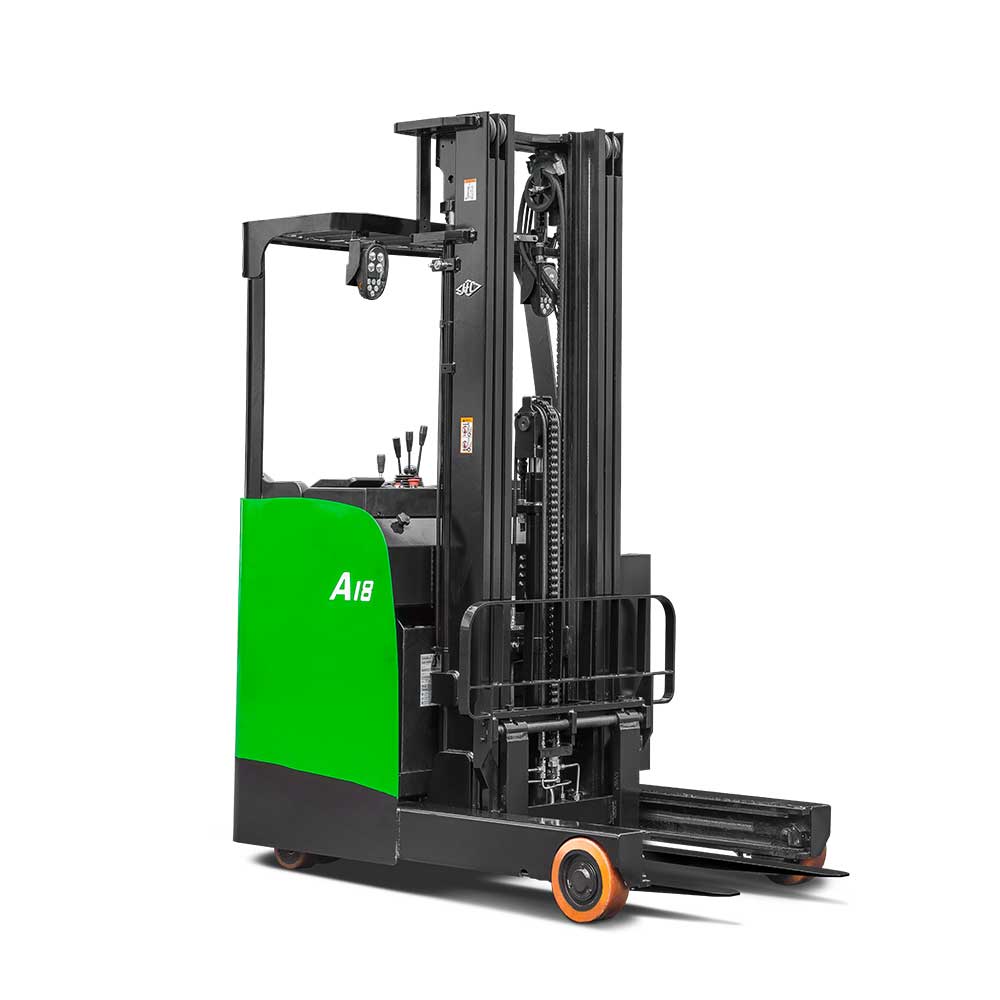 The A series stand-on reach truck is a new-generation product developed by our company in response to different market needs. The truck has comfortable ergonomics, wide operating vision and a stable control system.