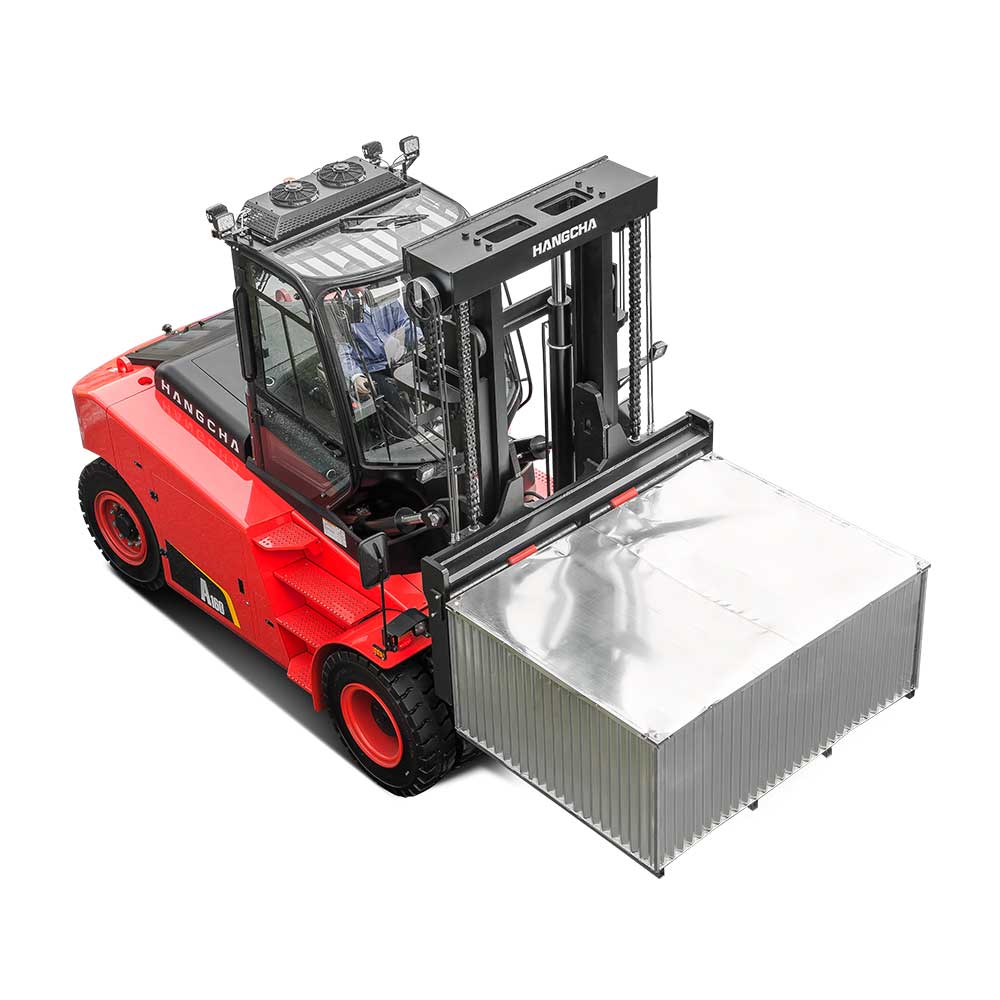 The duplex mast has increased width, higher resistance to torsion, and broader view; oil circuit with dual governing valves features higher safety. Hydraulic fork width adjustment is a standard configuration.