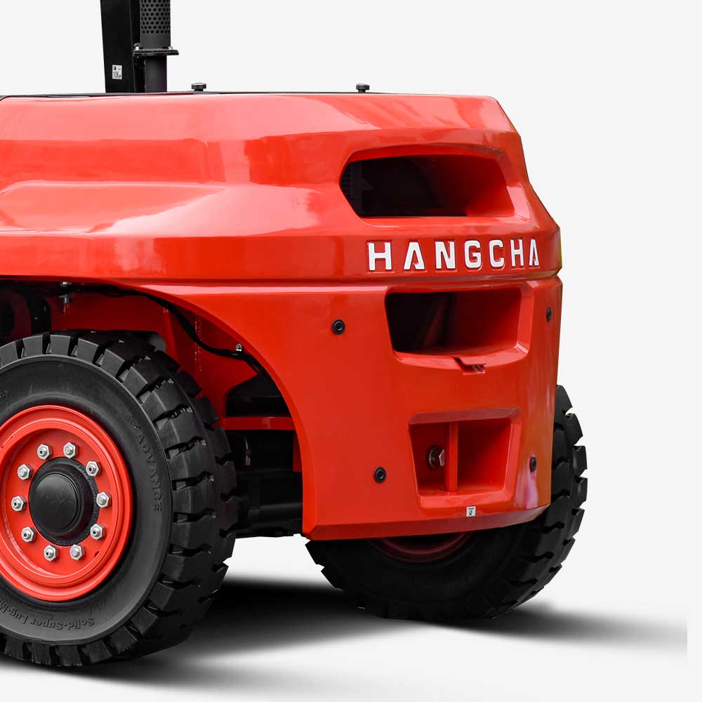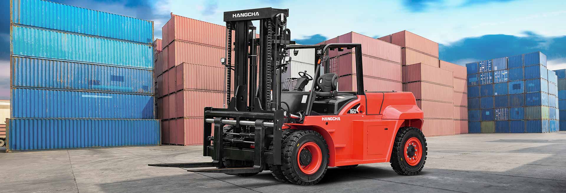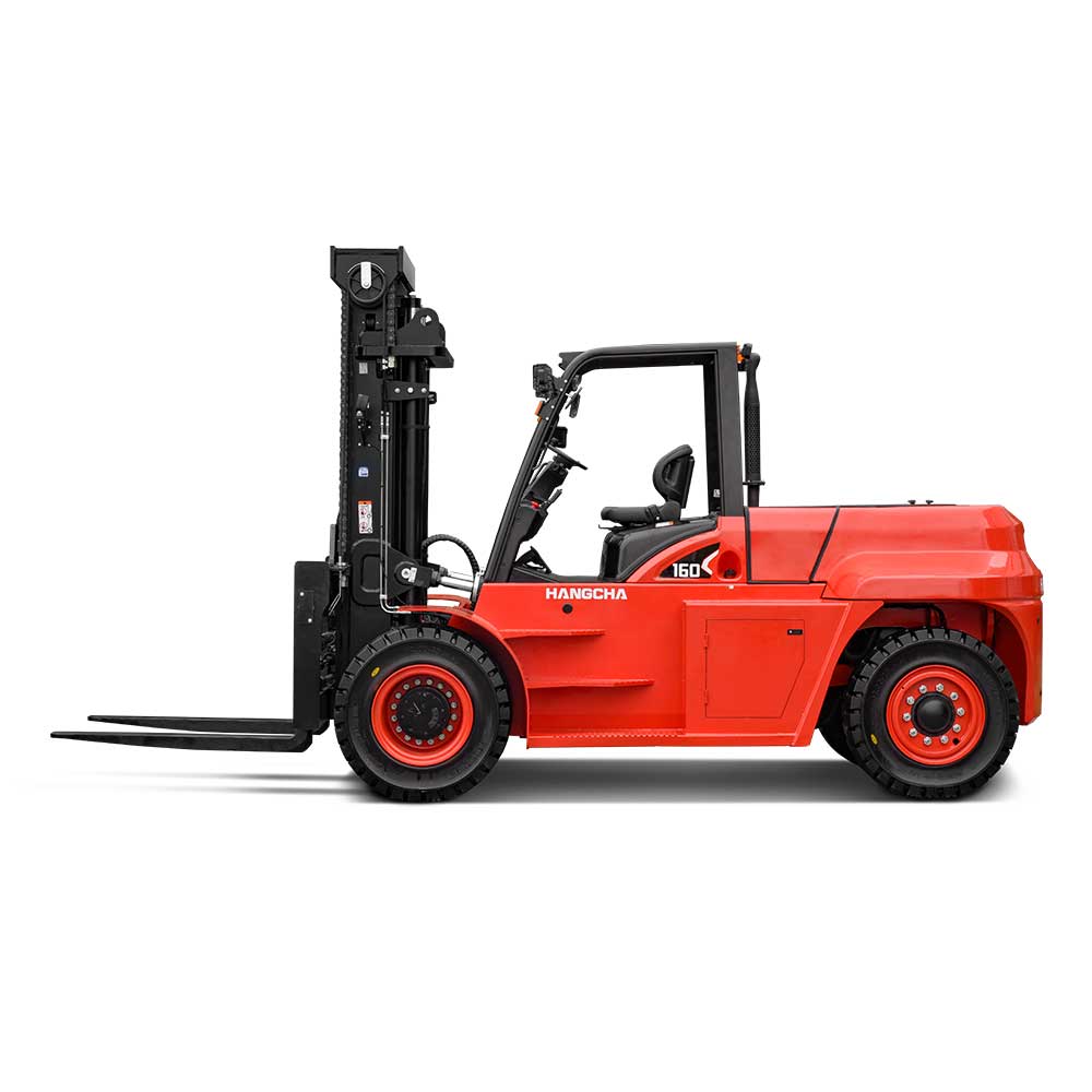 The A series 14-16t forklifts are a new series of internal combustion counterweight forklifts independently developed on the basis of the 12t platform. Since the matching of the power transmission system is optimized, the design of the hydraulic and control systems has been likewise optimized, and the structures of the vehicle frame and mast are also optimized, so that the power and load capacity of the vehicle are greatly improved. With key parts all of domestically renowned brands, the forklifts are mature and reliable, and are suitable for loading, unloading, stacking and short-distance transportation in places with high work intensity and harsh operating conditions such as airports, ports, docks, stations, warehouses, etc.