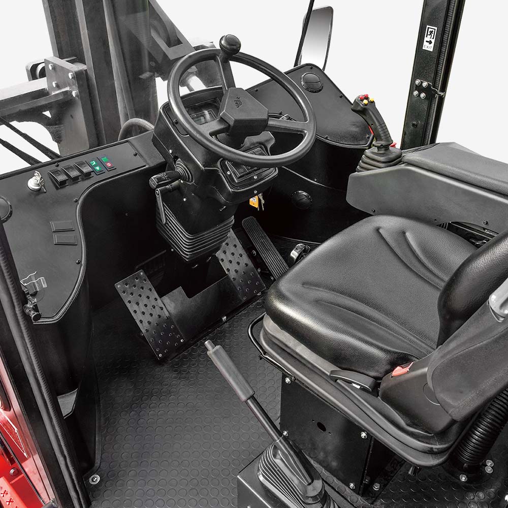 The fully-suspended seat with an adjustable turning device and the cab equipped with a cooling and heating air conditioner and a reading light make the driving experience more comfortable.