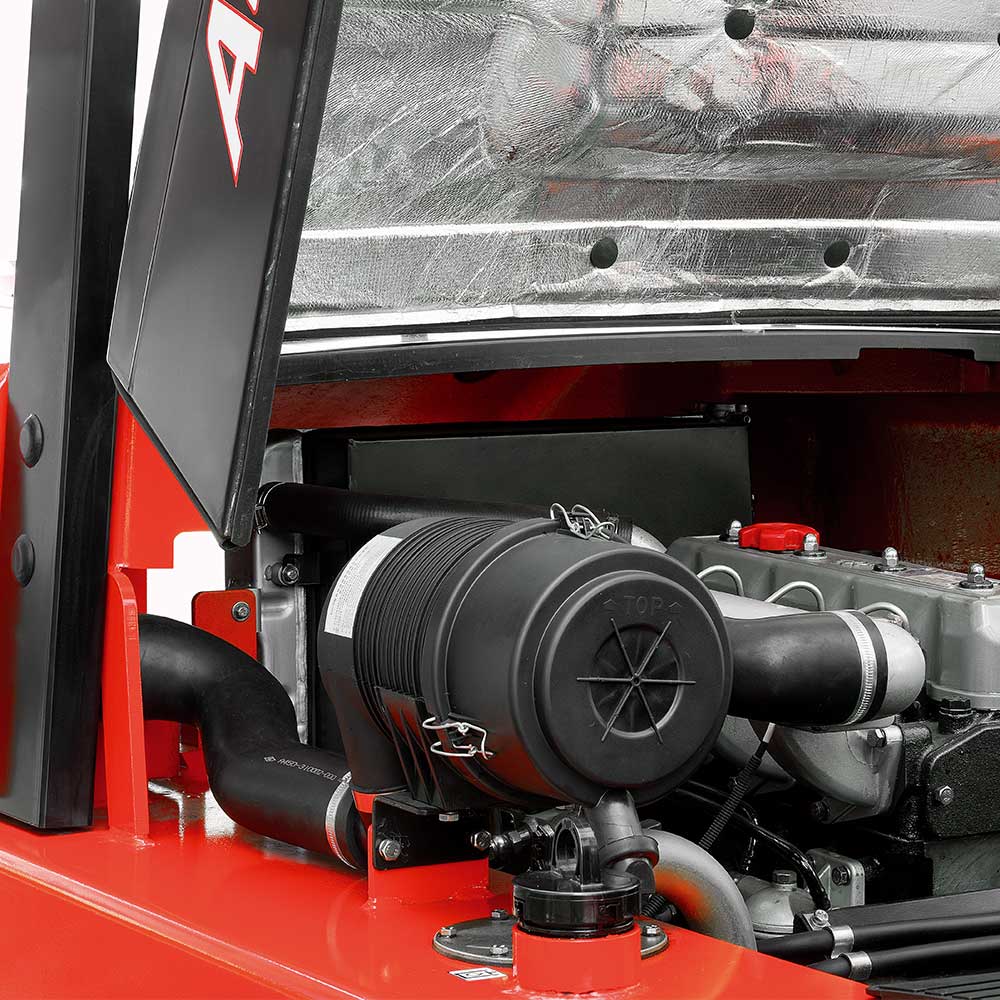 With the thicker rear leg of the overhead guard, the engine air admission quantity is increased, the air admission resistance is reduced. The engine can conduct more sufficient combustion, and the engine life is extended.