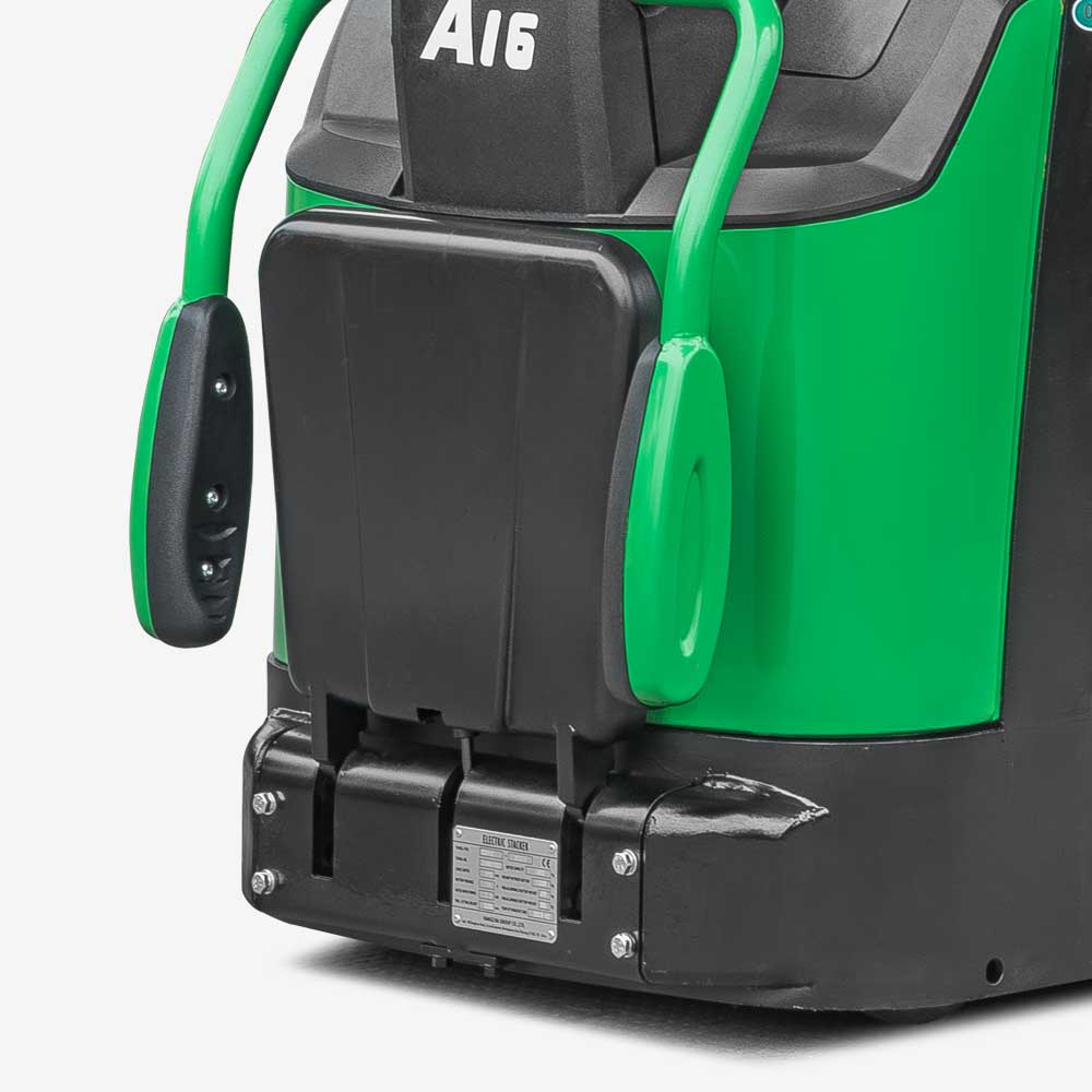 The shock absorption design of foldable platform improves comfort greatly to the operator.