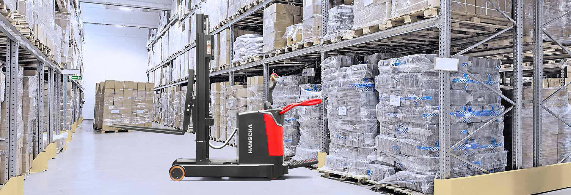 The truck combines benefits of regular stacker and counterbalanced stacker. It can be used for non-standard pallets, enclosed pallets, and enclose shelves. The mast can be retracted into truck body, which reduces passage width required for operation significantly, and the stacker is an ideal vehicle for operation in narrow passage. Cutting-edge AC control technology applied for the truck offers excellent performance, comfortable operation, safety and reliability, and low maintenance cost.