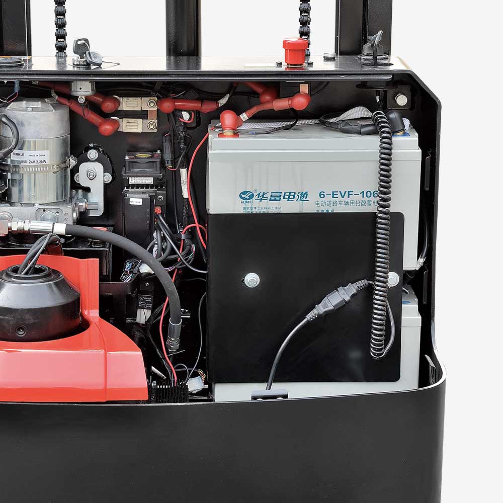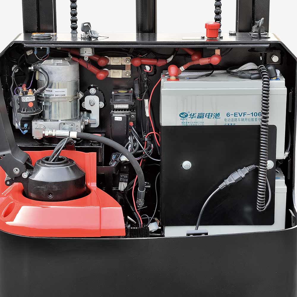 A series mini range pallet stacker (double column) applied professional industrial design, stream lines, and compact, and fully ergonomic consideration, in line with the latest design trends.