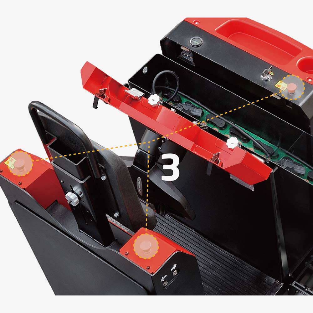 There are three emergency switches, you can quickly cut off the power with any switch to prevent the hurt
