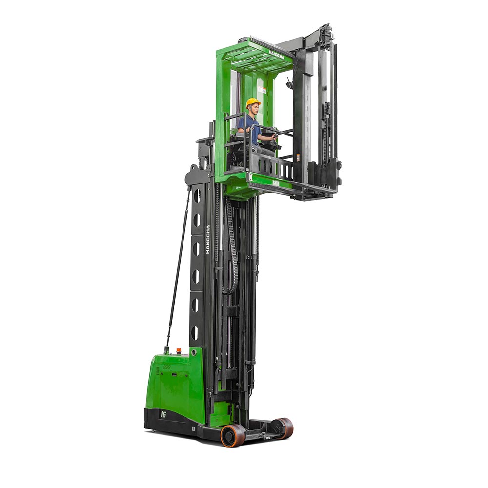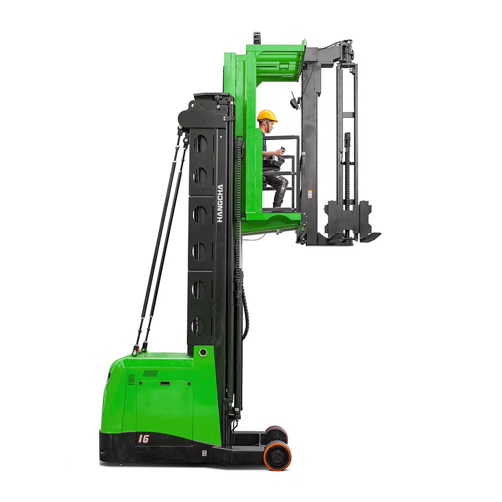 The 1,000-1,600kg man-up tri-lateral stacker for narrow aisles and high bay warehouses can meet the needs of customers for operations in narrow aisles and high stacking heights. Featuring a high lift, high load capacity and small turning radius, as well as advanced performance, easy operations, high safety and reliability, etc., it is an ideal solution for handling and stacking long materials indoors.