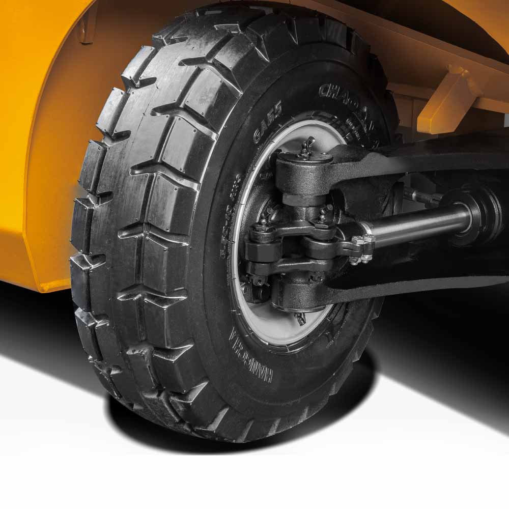 The sturdy and durable mast, front and rear axles, and tires for internal combustion forklifts are used. With a sufficient large distance from the ground, the forklift can be easily driven on the bumpy ground outdoors.