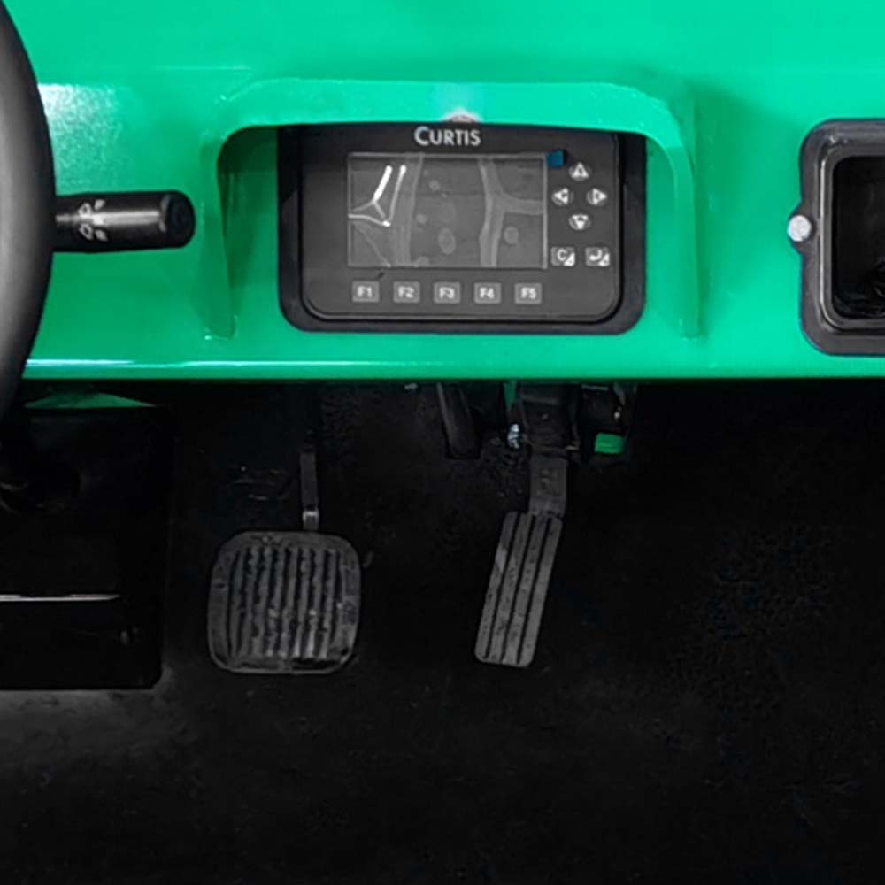 The efficient AC power system has standard electromagnetic brake, automatic parking and complete protection functions, greatly improving reliability and service life. The electrical components are arranged at height, and the whole vehicle has a high protection level. With the battery placed at the bottom of the vehicle frame, the vehicle has good stability, both safe and reliable.