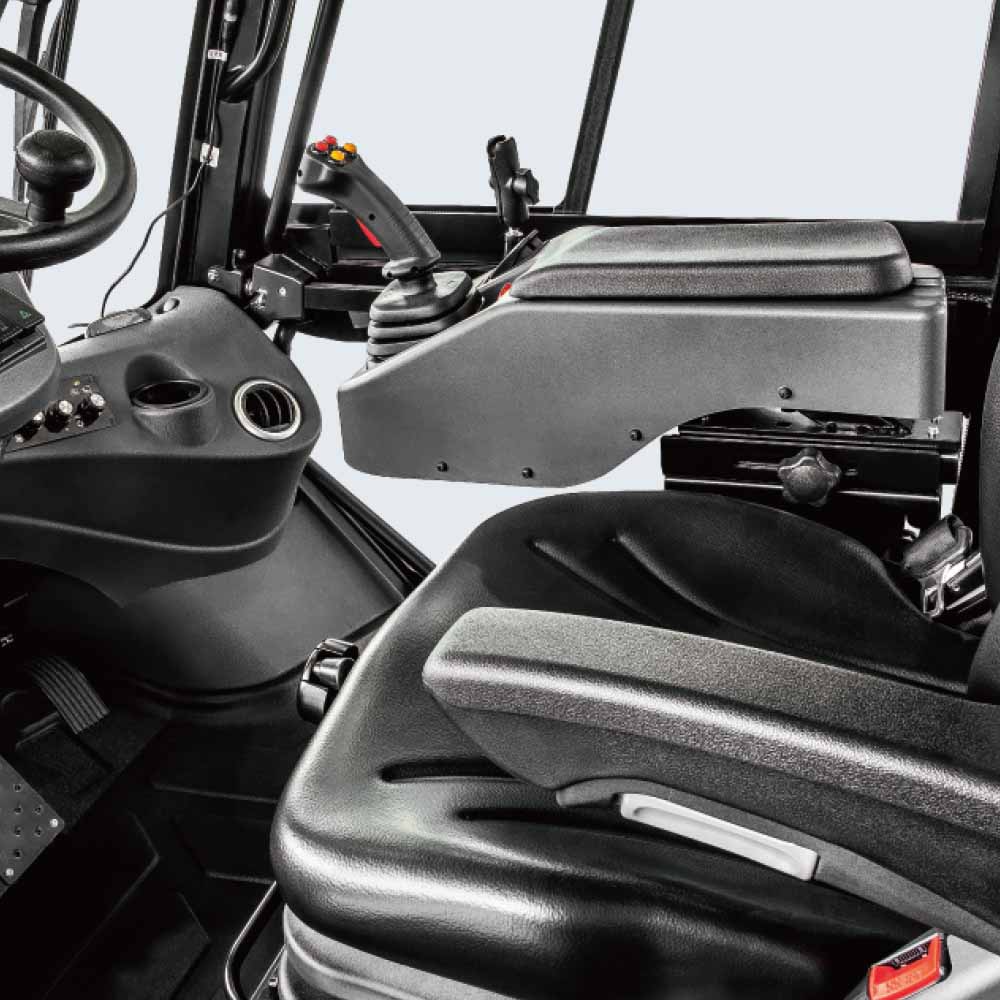 The whole vehicle is equipped with a tiltable cab, a wide-opened hood, mast centralized lubrication and fault diagnosis display function, which is very convenient for maintenance.