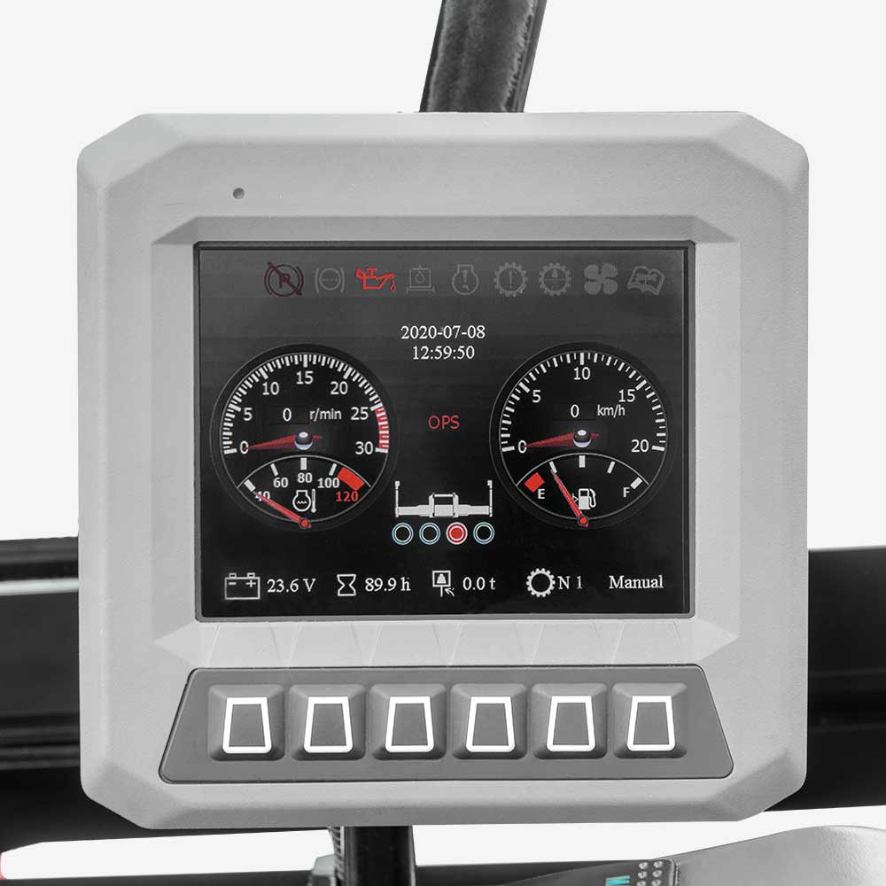 The instruments with high-definition color screens display the truck status in real time and the fault alarm enable easier maintenance.