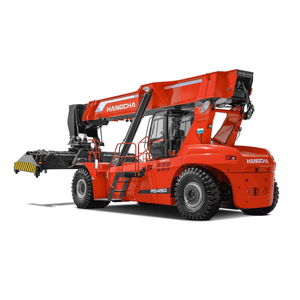 The RS4531CH-XRW86 Reachstacker is a newly developed product based on Hangcha’s X series platforms. Inheriting the appearance of the X series family, it is fashionable, high-end and powerful. Using key parts of internationally renowned brands, it has excellent performance and guaranteed quality. Using advanced control technologies, it is safe, reliable, comfortable and ecient. It is mainly used in the loading, handling and stacking operations of 20’ and 40’ ISO heavy containers and meets the requirements for high-intensity and long-term operations of containers at ports, docks, railway and highway transfer stations, storage yards, etc.