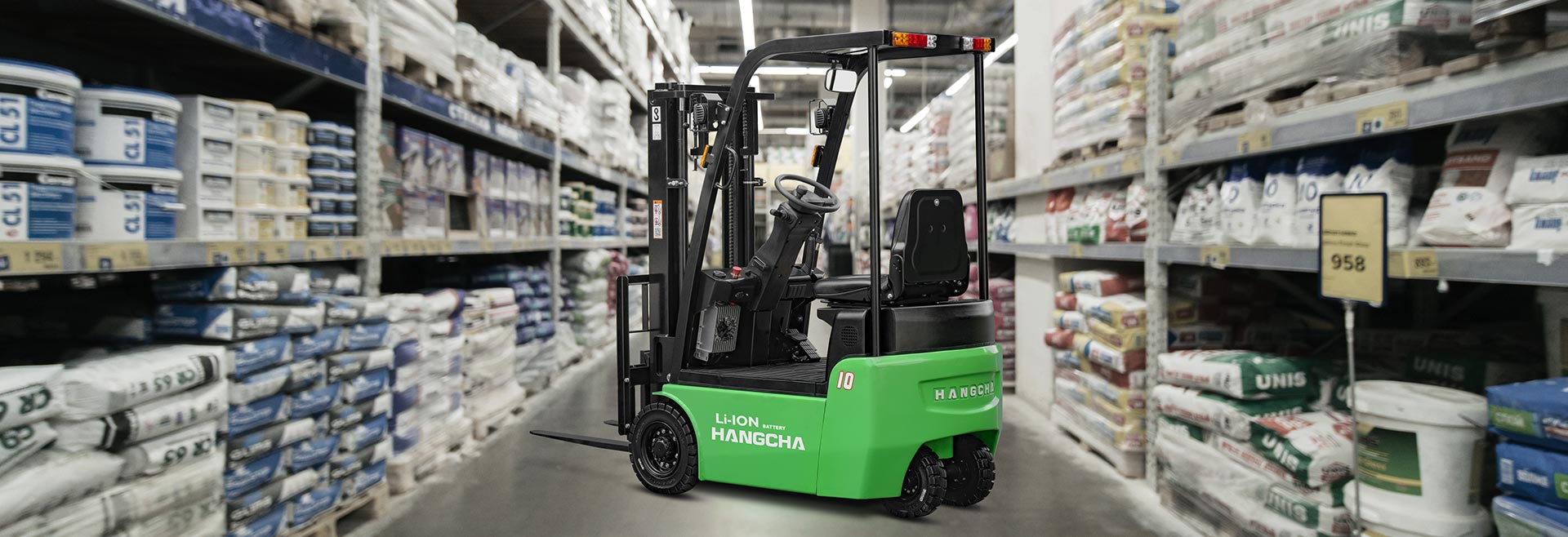 Hangcha’s X series 0.6-1.0t 3W electric forklifts are a new series of high-efficiency, energy-saving small-tonnage electric counterbalanced forklifts with a new structure that represents a breakthrough over the traditional design concept. With a compact structure, small turning radius and light weight and high maneuverability, the truck is widely used in narrow operation places, e.g., used for handling between floors, to and from elevators or in warehouses, supermarkets, workshops, etc.