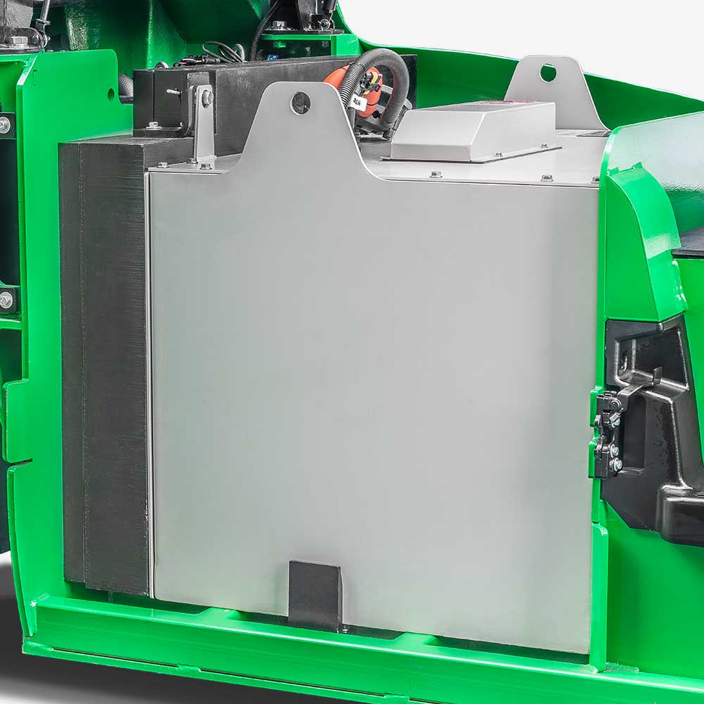 The fully opened hood quite facilitates the maintenance of the battery, oil pump motor and electric control assembly.