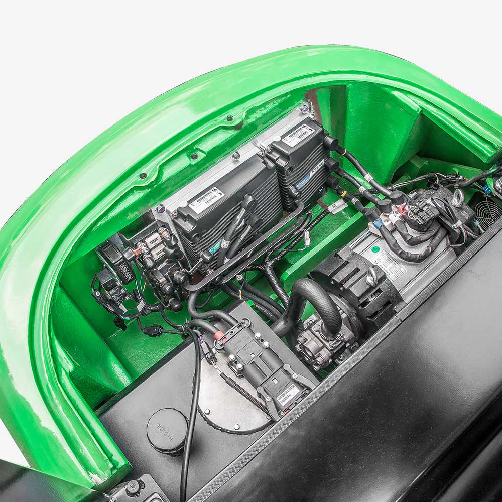 The high-frequency MOSFET integrated controller ensures smooth and accurate driving and lifting control, and has excellent speed regulation performance, good performance of electronic control matching the motor, functions of regenerative braking, reverse braking and anti-sliding on ramps, etc., and high safety and reliability.