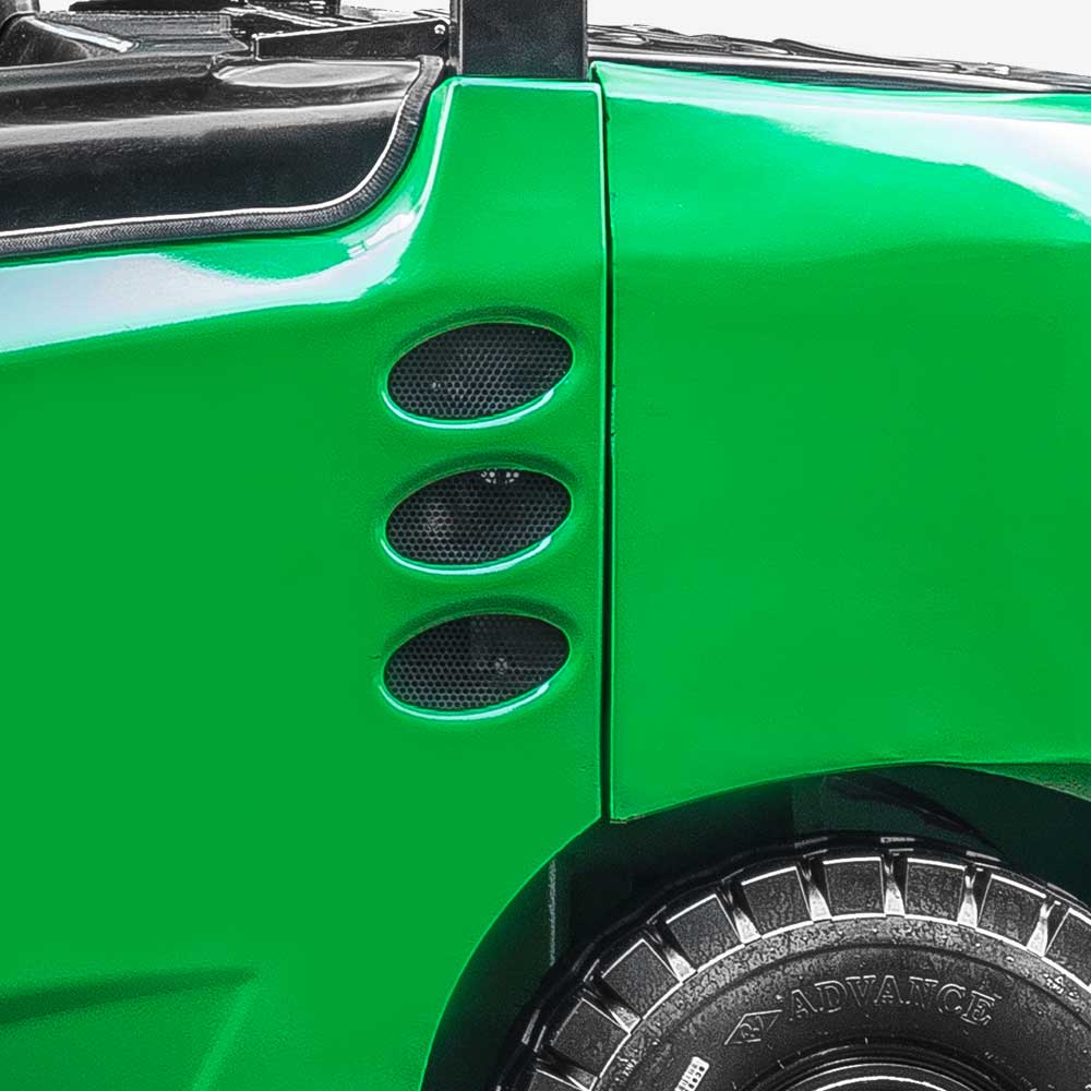 The optimized design of the wide-view mast, wide-view overhead guard and low dashboard enables a broader view of the operator and higher safety.